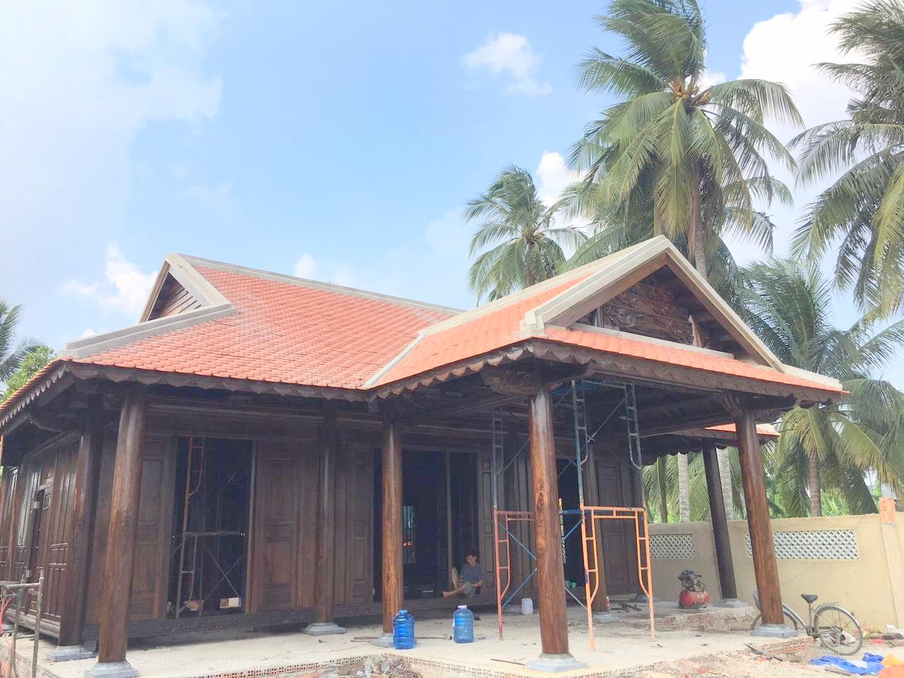 Ngôi nhà được thi công lắp dựng vào tháng 3/2017, với diện tích hơn 200m2, với vật liệu gỗ chiêu liêu được bảo hoàng khai thác và nhập khẩu trực tiếp từ Lào, qua bàn tay khéo léo và lựa chọn gỗ kỹ, ngôi nhà đã chiếm trọn lòng tin của CĐT